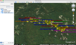 Here you can see more than 800 points, each describing an observation of an individual bird. This data is in the form of KML, a sort of XML document from Google for spatial data.