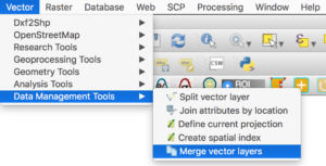 Next, under “Vector”, select “Merge vector layers” via Data Management Tools.